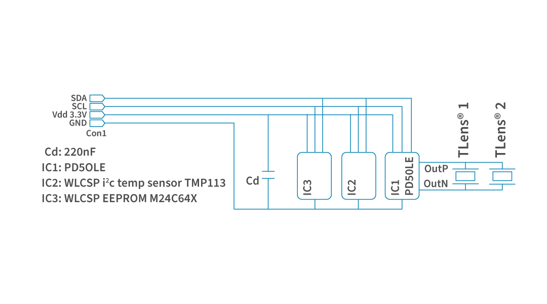 Each lens is self contained, incorporating advanced drive and control electronics and temperature sensing with a common FPC connector format and pinout across all devices to enable simple evaluation, selection and swapping of lenses. Each lens requires only power supply and i2c communication from the host platform to enable focus tuning.